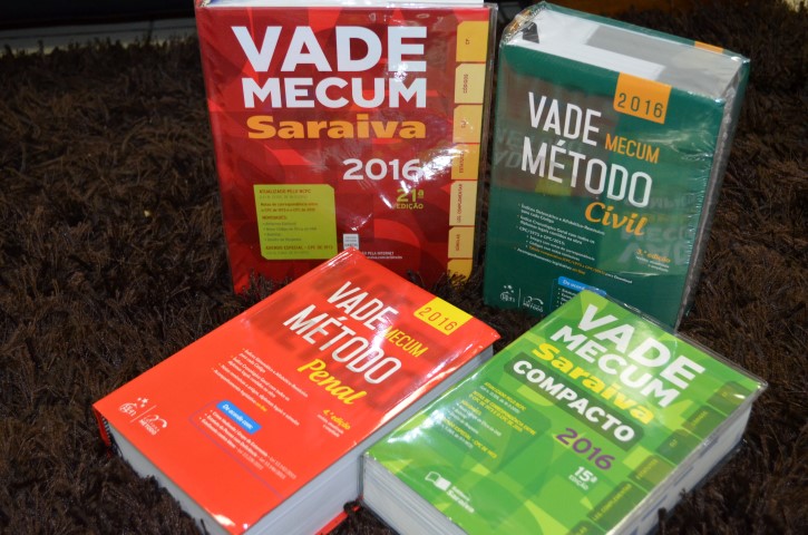 Manual do Advogado de Valdemar P. da Luz, Manual de Direito Administrativo de José dos Santos Carvalho Filho, Vade Mecum Saraiva 2016, Método Penal, Método Civil e Compacto Saraiva.